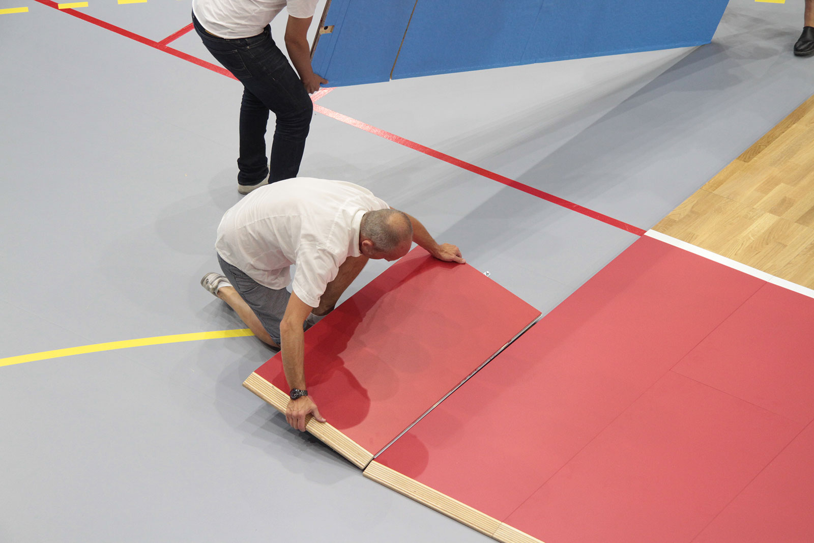 I hallen kan man även lägga ut ett mobilt trägolv. Produkten Speed-Lock S20 är ett mobilt parkettgolv godkänt för FIBA-spel. Det mobila golvet är försett med linjer och målade områden för att snabbt och enkelt förvandla den befintliga idrottshallen till en basketarena. Golvet läggs enkelt ut direkt på sportgolvet och för 6 personer tar läggningen ca 3 timmar.