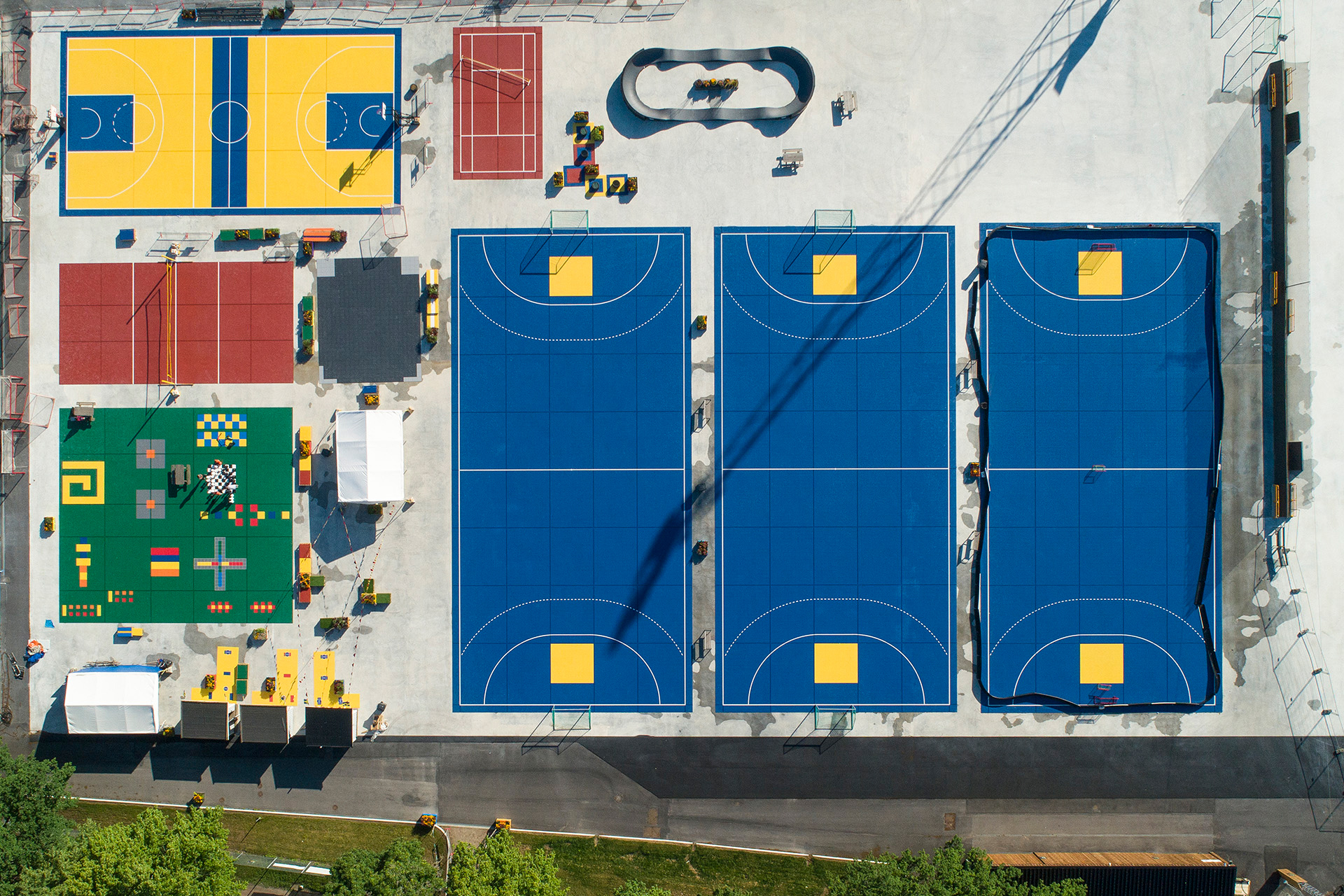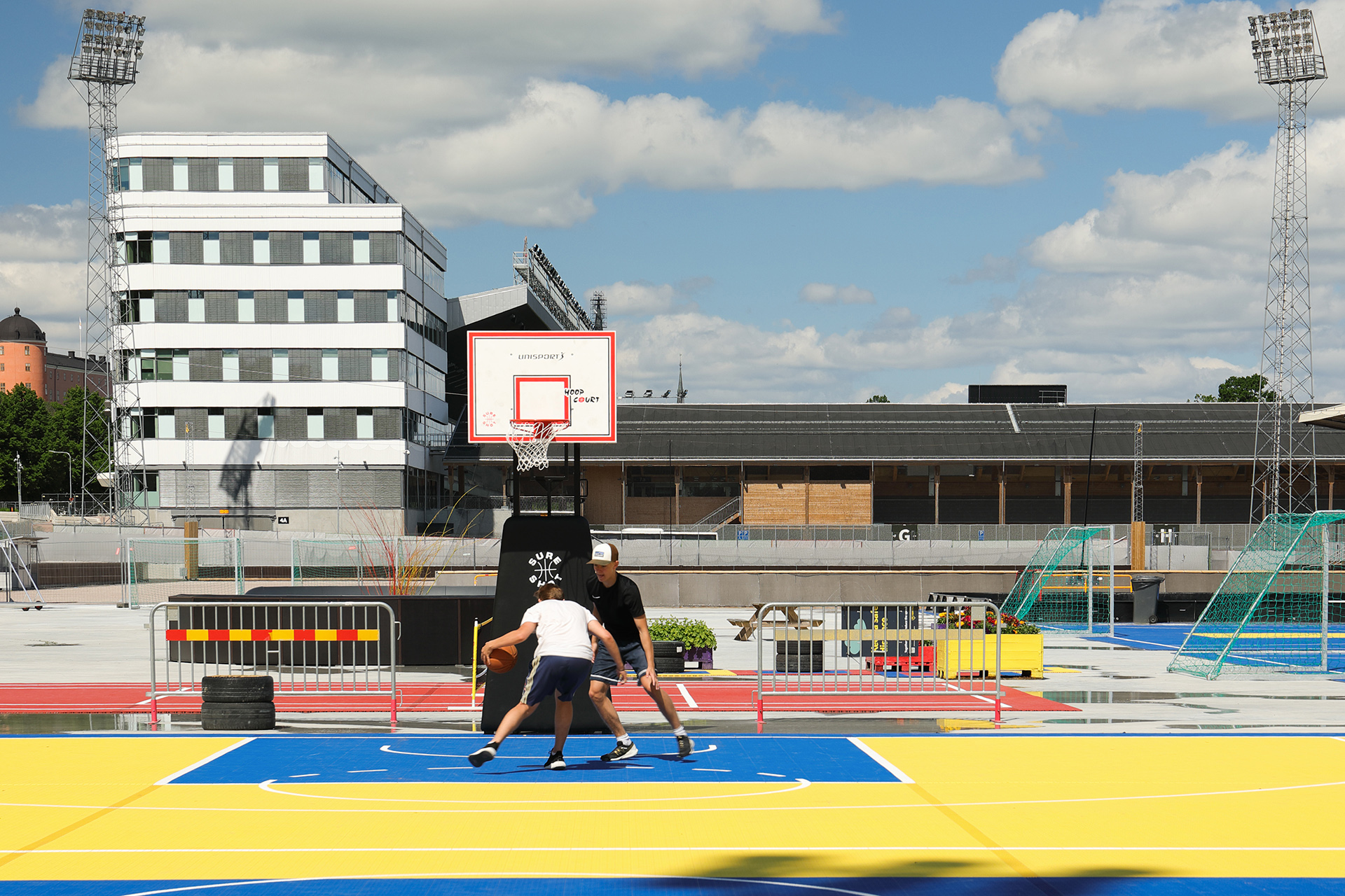 Unisport har levererat Bergo sportgolv i olika färger över hela ytan. Det är Unisports största projekt av sportgolv för utomhusbruk hittills. Vi har även levererat pumptrack, basketmål, innebandymål, fotbollsmål, tennisnät, klubbor mm.