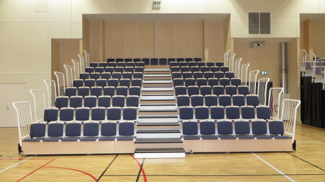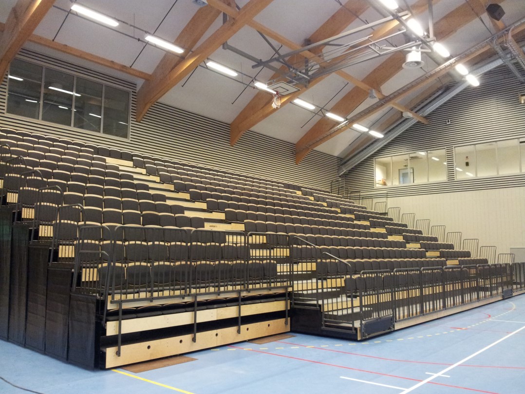 På mindre än 2 minuter kan en sporthall eller gymnastiksal med en teleskopläktare för ca 1000 sittande personer förvandlas till en helt frilagd golvyta färdig att utnyttjas för andra aktiviteter. Våra teleskopläktare passar såväl den mindre skolgymnastiksalen som en fullstor multiarena.